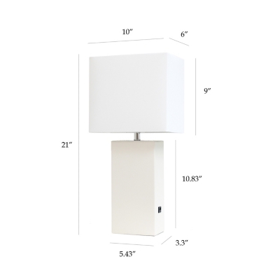 Elegant Designs Leather Lamp W Usb And White Shade Ashley