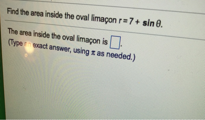Solved Find The Area Inside The Oval Limacon R 7 Sin Chegg Com